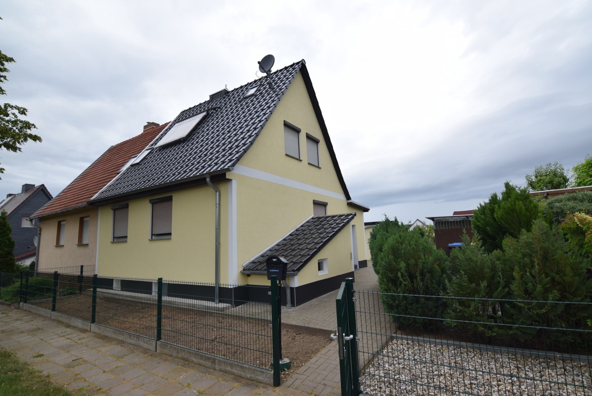 Zum Verkauf steht eine kleine, gepflegte Dopplehaushälfte in ruhiger Lage. Das Haus wurde 1948 in Massivbauweise erreichtet. Im Laufe der Jahre wurde um - und ausgebaut. Im EG befinden sich Wohnzimmer, Küche und Bad. Ein weiters Zimmer befindet sich im ausgebautem Dach. Das Dach wurde neun eingedeckt und isolierte. Das Schlafzimmer befindet s