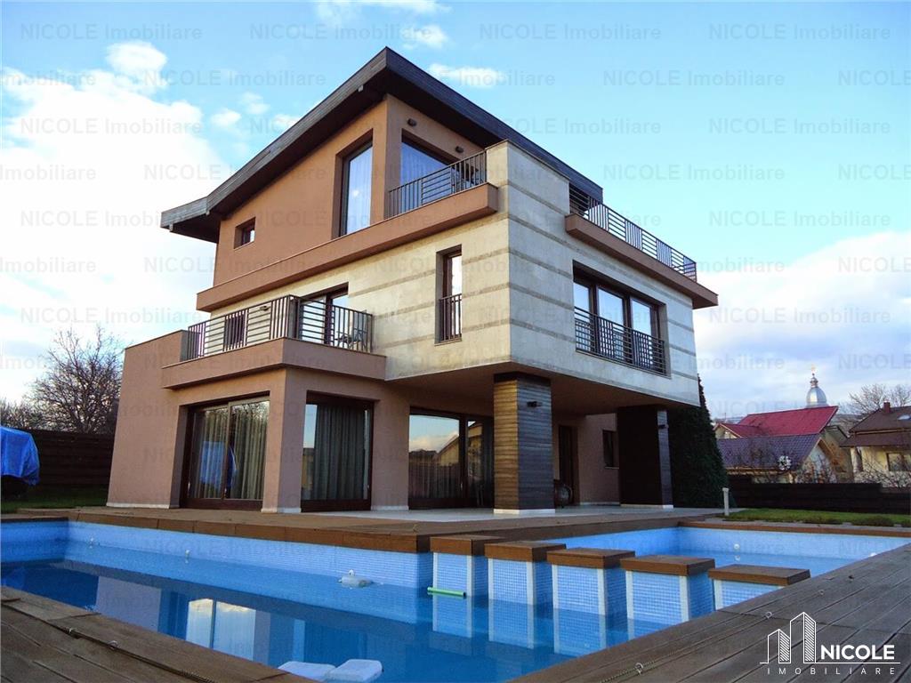 Nicole imobiliare va ofera spre vanzare Vila de Lux in Cluj-Napoca, zona Dambul Rotund.Casa are suprafata construita de cca 400 mp + terase, iar terenul are 1925 mp.Proprietatea este dispusa D+P+E1+E2 fiind compartimentata astfel: Subsol, bucatarie 60mp , camara, camera tehnica, dresing si hol Parter hol,dresing, bucatarie , baie , living,