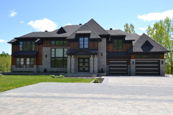 **Luxueux cottage de 87 x 48**Propriété au design contemporain sise sur un immense terrain de 1 628 730 PC** De construction 2012, elle est dotée de plafonds de 9 pieds aux 2 étages, abondante fenestration, finitions de qualité supérieure. Salle familiale à l'étage, splendide escalier semi-circulaire, magnifique cave à vi