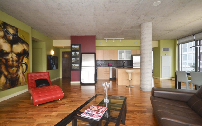 Spectacular Penthouse with great views of Parliament, Gatineau Hills & river. 2 bed + den, 2 full baths with beautiful cherry hardwood floors, granite counters, 9 ft "industrial look" concrete ceilings & columns, floor to ceiling windows makes this unit light and bright. Private oversized terrace (35' x 11'). Amenities include a gym, party room wi